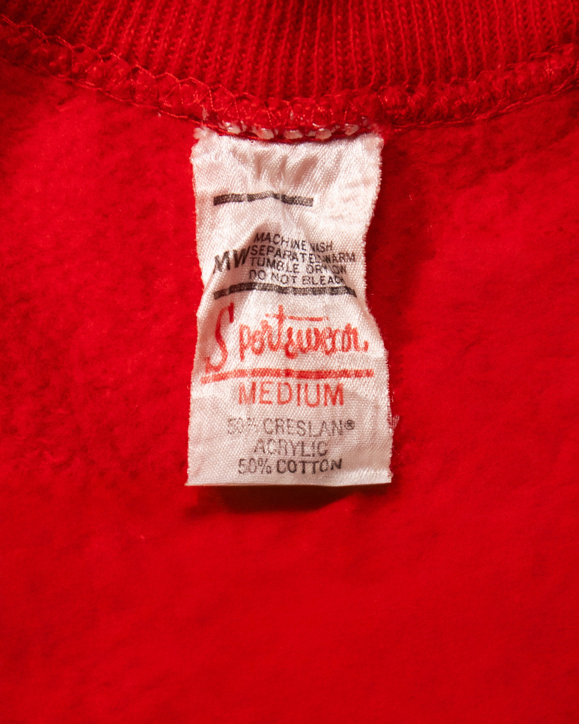 A 1960s athletic sweatshirt featuring collegiate-style typography and heavyweight fleece construction. The piece reflects early American school sportswear before synthetic blends became standard.