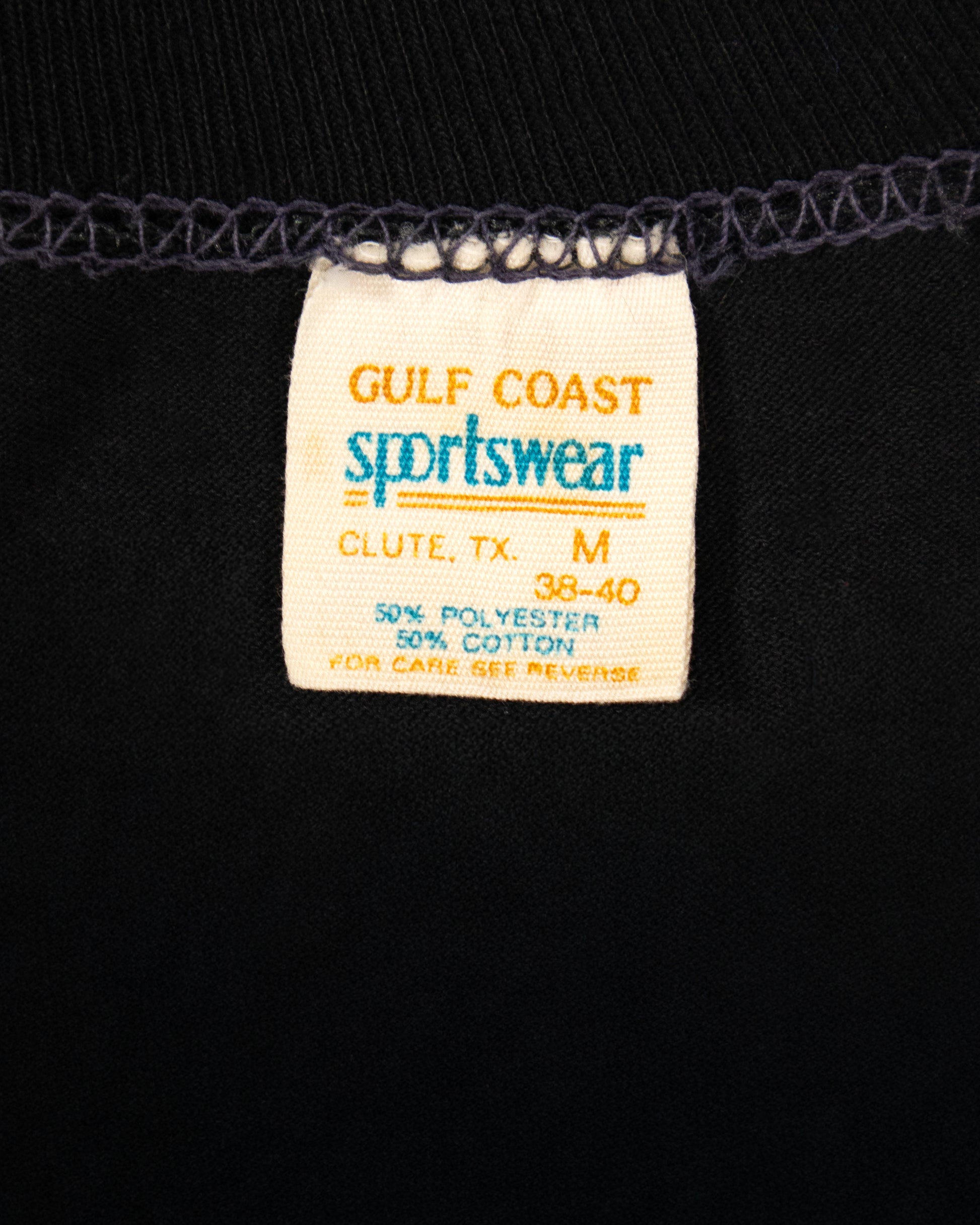 A 1980s graphic t-shirt featuring technical diagram iconography and instructional typography printed on black cotton. The design reflects humor rooted in engineering culture and workplace identity during the early computer and industrial crossover era.